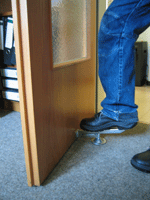 Carrymate® Portman™Вставьте Portman под элемент, который хотите поднять. Затем поставьте ногу на всю площадь Portman, таким образом, чтоб носок находился на красной резине (на чёрной резине на Portman XXL) а пятка - на круглой "подставке". Теперь вы можете поднять предмет, нажав на Portman силой ноги. Интегрированная шина компенсации наклона, предотвращает опрокидывание, а вращающиеся подставка, позволяет вращения и повороты элемента. Руки остаются свободными!